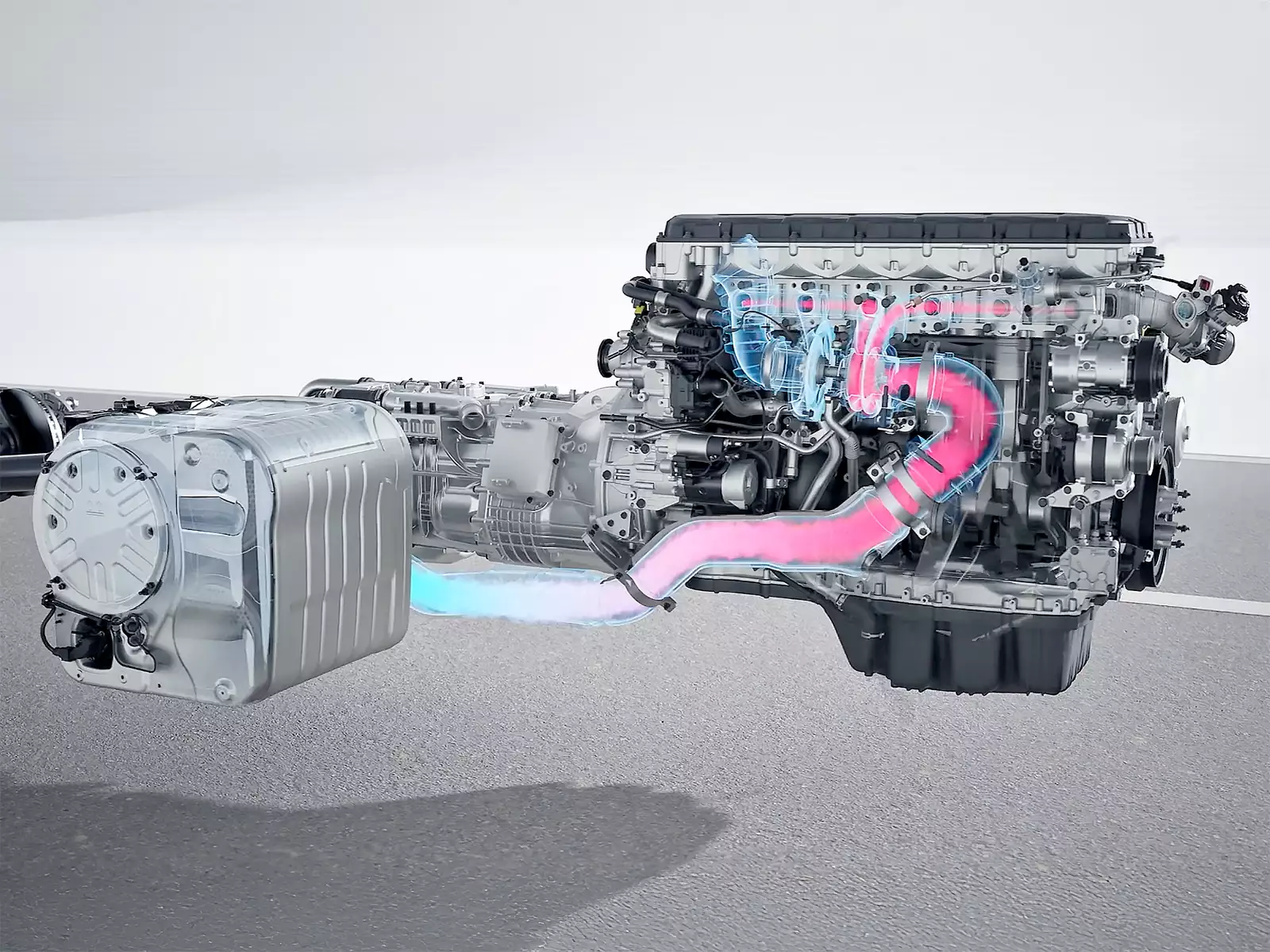 În noul lanț cinematic MAN D30 PowerLion, fiecare componentă este proiectată pentru eficiență și durabilitate maxime. Află exact cum interacțiunea perfectă dintre motor, sistemul de tratare ulterioară a gazelor de eșapament și frâna de motor îți reduce costurile de operare.