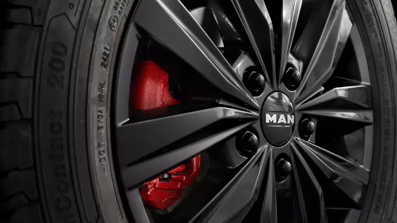 Designul exclusivist, cu elemente în stil sportiv din carbon, partea frontală elegantă și detaliile roșii stabilesc noi standarde în materie de estetică. Astfel, MAN TGE Individual Lion S atrage atenția.