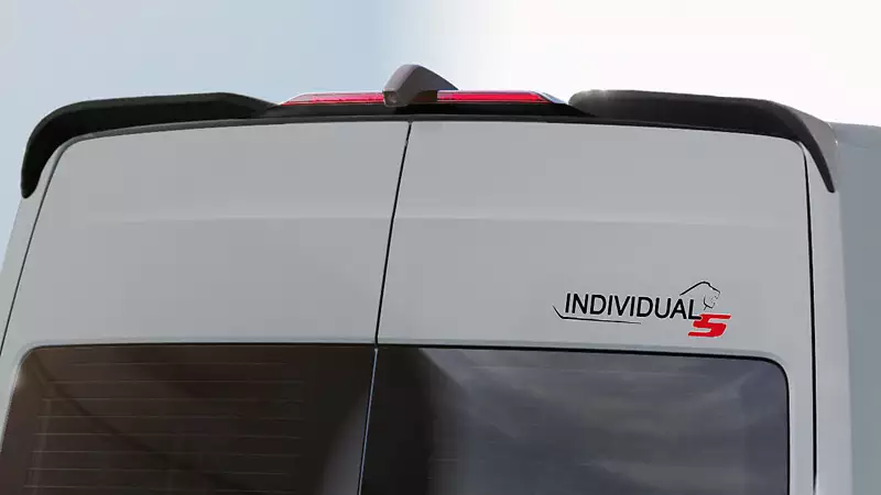 Finisaje exclusive din oțel inoxidabil pe partea frontală a vehiculului, finisaje pentru bara de protecție în aspect carbon, benzi decorative roșii pe grila radiatorului și pe părțile laterale ale vehiculului, precum și vopsea opțională pentru bara de protecție și protecția laterală în culoarea caroseriei.